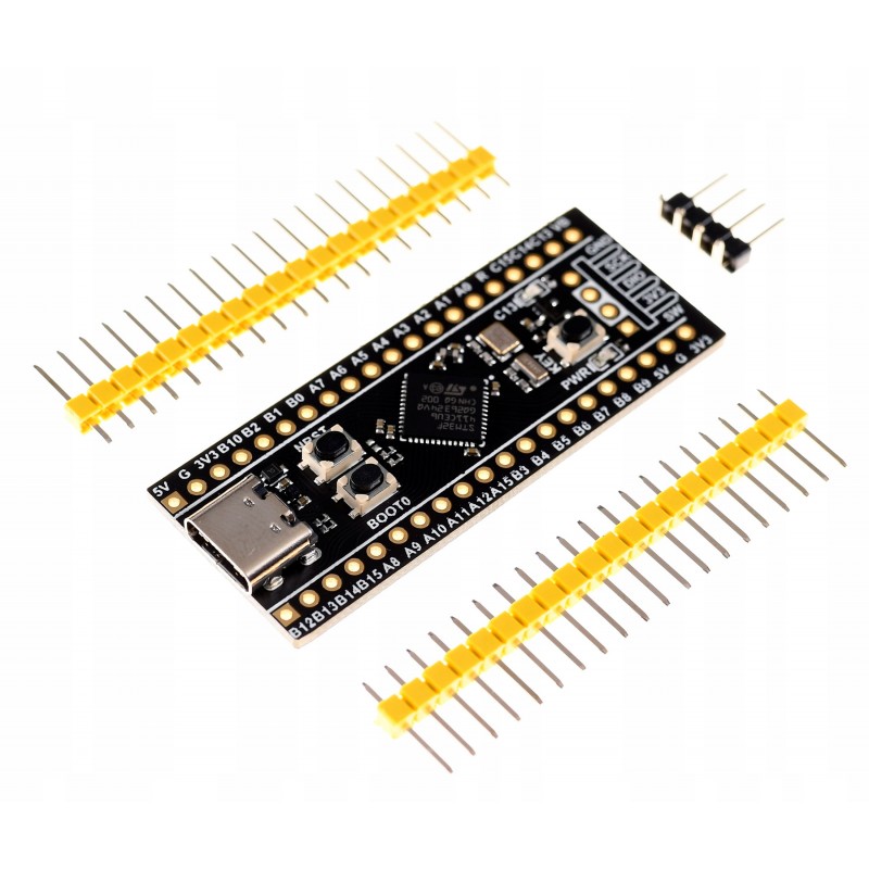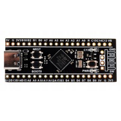 STM32F411CEU6 "Black Pill" to kolejna już generacja płytek deweloperskich opartych na mikrokontrolerach STM32. Jeśli Twoje Nano lub Uno natrafiło na projekt który wymaga większej mocy, to "Black Pill" jest jak najbardziej dla Ciebie! Zegar na tej płytce taktuje do 100 Mhz, 512KB pamięci Flash na Twoje programy oraz bogate peryferia które pozwolą na bezproblemową komunikację ze światem zewnętrzym. Jeśli wybudowana pamięć Flash nadal okaże się niewystarczająca, możemy łatwo zwiększyć ją poprzez wlutowanie kości SPI Flash, dzięki której możemy zwiększyć miejsce do aż 16MB! Dla pisania aplikacji możemy wybierać z naprawdę sporej ilości środowisk. Oprócz IDE developerskich polecanych przez STMicroelectronics, układ jest w pełni kompatybilny z Arduino. Do tego mamy częściowe wsparcie Mbed oraz Micropython. Dla wygody użytkowników, Black Pill został również wyposażony w port USB-C, przez który możemy komunikować się z procesorem jak i zasilać całą płytkę. Oczywiście możemy również zaprogramować układ poprzez interfejs SWD/JTAG oraz port szeregowy.