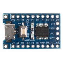 Mikrokontroler STM8S103F3P6 jest posiada szeroki zakres zasilania od 2,95V do 5,5V. Prezentowana płytka deweloperska, dzięki wybudowanemu regulatorowi pracuje z napięciem 3,3V więc może być wykorzystana do obsługiwania modułów, które nie są kompatybilne z 5V. Urządzenie możemy zasilać poprzez port Micro-USB oraz złącze programatora ST-Link. Uwaga ! Otwarty kompilator SDCC nie wspiera C++, więc płytka nie będzie w 100% kompatybilna ze składnią używaną w środowisku Arduino. Jednak warto skorzystać z alternatywnego Sduino, który z powodzeniem można używać w klasycznym Arduino IDE. |